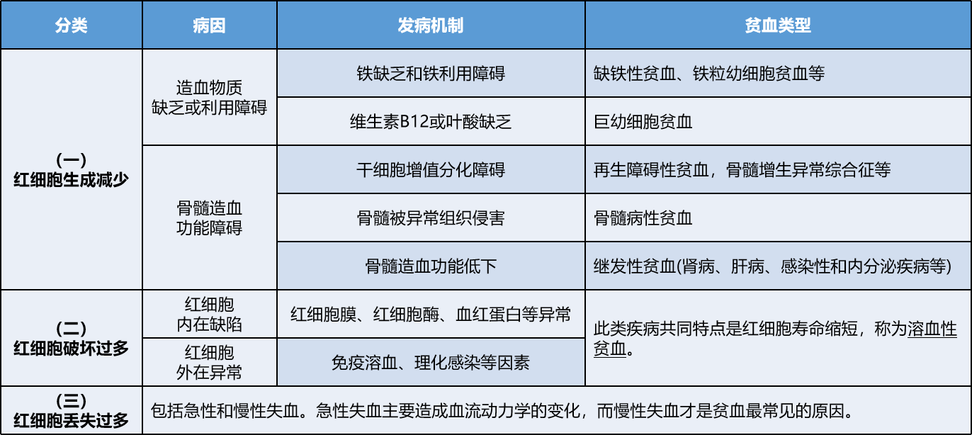 贫血是由多种原因引起外周血单位容积内血红蛋白浓度(Hb)、红细胞计数(RBC)及红细胞比容(HCT)低于本地区、相同年龄和性别的人群的参考值下限的一种症状。贫血是最常见的血液疾病,由各种疾病所致,贫血本身不是一种单独的疾病。