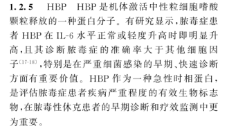 其中 2020 年《中国脓毒症早期预防与阻断急诊专家共识》提到:HBP 作为一种急性时相蛋白,是评估脓毒症患者疾病严重程度的有效生物标志 物,在脓毒性休克患者的早期诊断和疗效监测中更为重要。